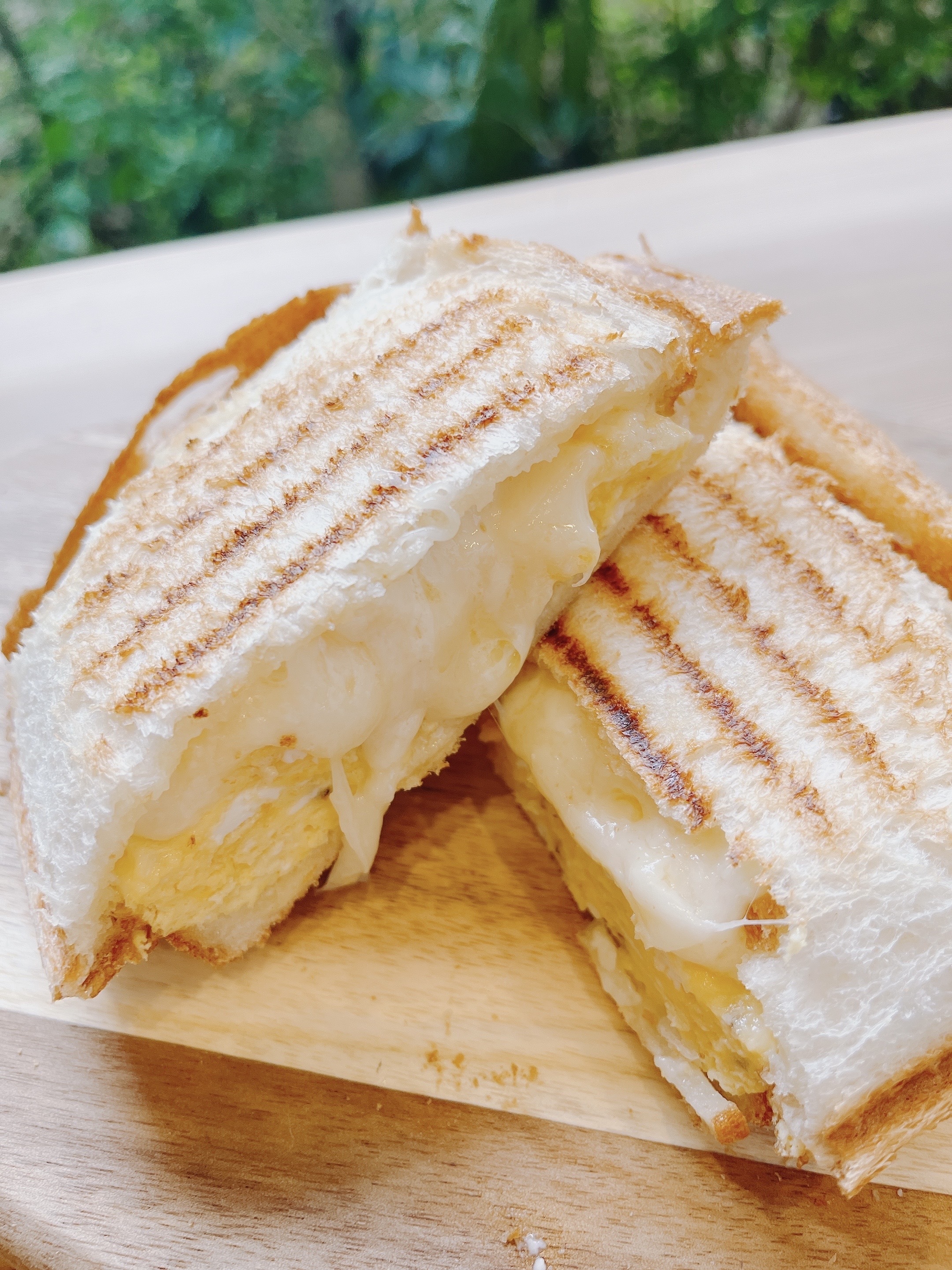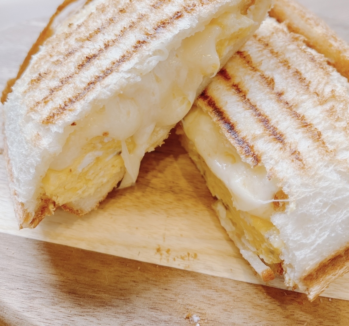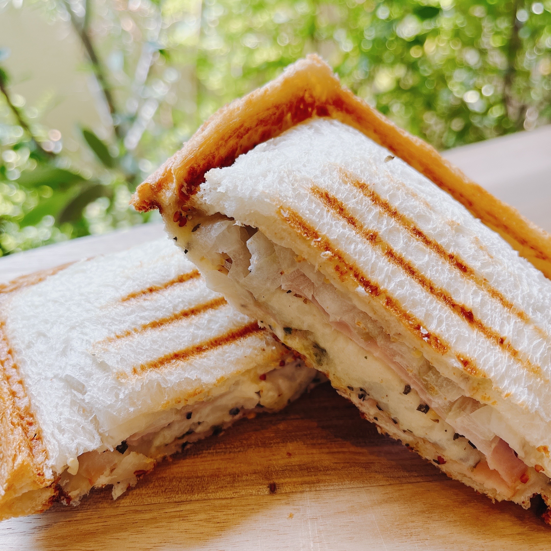 ポテトサラダとハム、玉ねぎをはさんだホットサンド